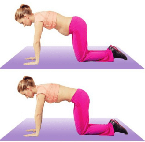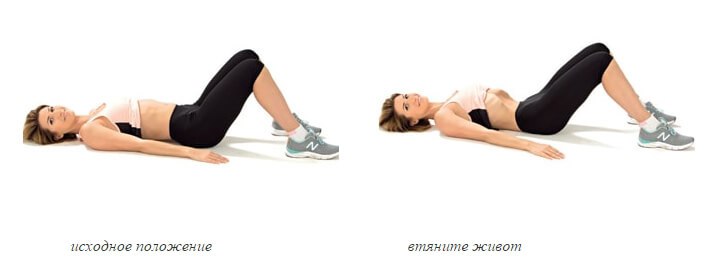 Теперь представляем, что наша задача — дотронуться животом до позвоночника. Задерживаемся в таком положении. Выдыхаем и расслабляем живот.