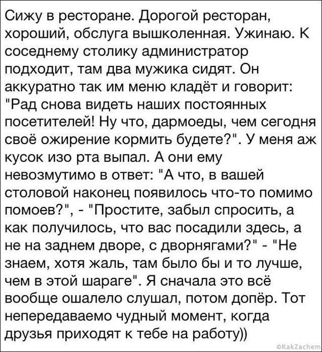 Жизнь — та еще шутница, и порой подбрасывает такие неожиданные повороты в событиях, которые не под силу придумать ни киносценаристам, ни профессионалам юмора. Мы собрали для Вас смешные жизненные анекдоты и истории, которые гарантированно подарят Вам отличное настроение. Наслаждайтесь!