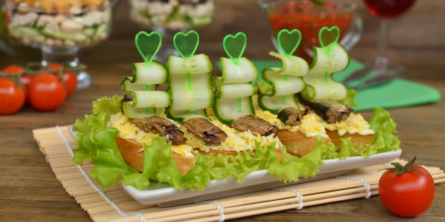 Бутерброды со шпротами, яйцом и свежим огурцом