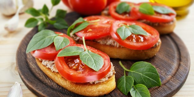 Бутерброды с помидорами, болгарским перцем и базиликом