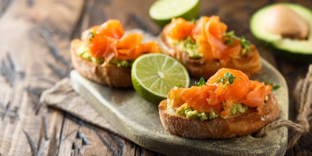 Бутерброды с авокадо, сыром, яйцом и красной рыбой