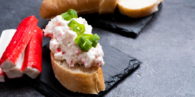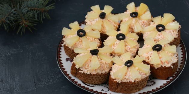 Бутерброды с крабовыми палочками, сыром и ананасами