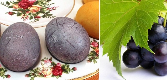 Виноградным соком можно окрасить яйца в фиолетовый цвет. Подойдет как свежевыжатый, так и магазинный. Яйца надо замочить в нём на несколько часов.