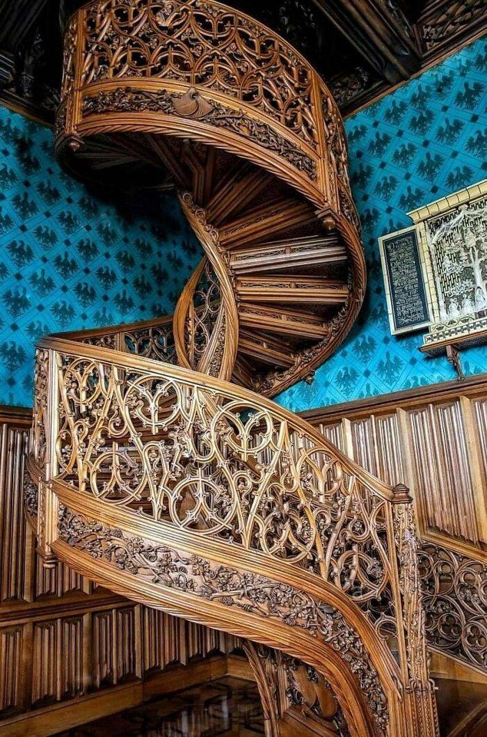 Спиральная лестница, вырезанная из одного дерева в 1851 году — в замке Леднице в Чехии