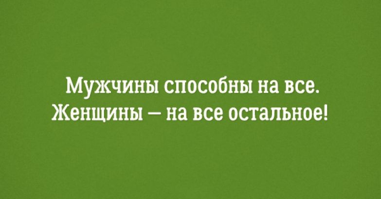 О том, что мужчины и женщины — совершенно разные, но тем не менее, не могут жить друг без друга — не говорил разве что ленивый. Поэтому мы не будем обсуждать очевидное — мы будем о нем шутить! Сегодняшняя подборка картинок — иронично-философская. Наслаждайтесь!