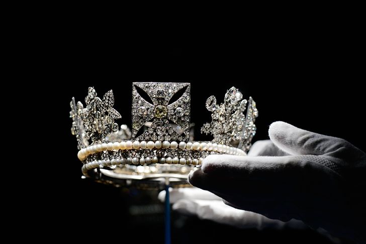 - Корона Елизаветы ll есть не что иное, как диадема короля Георга IV, созданная в 1820 году по просьбе самого короля. Она украшена 1 333 бриллиантами общим весом 320 карат (64 г), в число которых входит 4-каратный желтый бриллиант. Вдоль основания расположены 2 нитки жемчуга. Первоначально верхняя нить имела 86 жемчужин, а нижняя — 94, но в 1902 году число перлов было изменено на 81 и 88.
