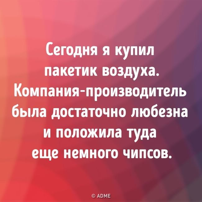 Гороскопы твердят, что грядущая неделя будет не самой простой, синоптики прогнозируют небывалую жару, которая тоже не облегчит наши дни, но мы искренне верим, что любые трудности по плечу людям, которые по жизни с улыбкой. Поэтому мы собирали, собираем и будем собирать самых свежий юмор для Вас, дабы Вы заряжались позитивом и делились им с ближними.