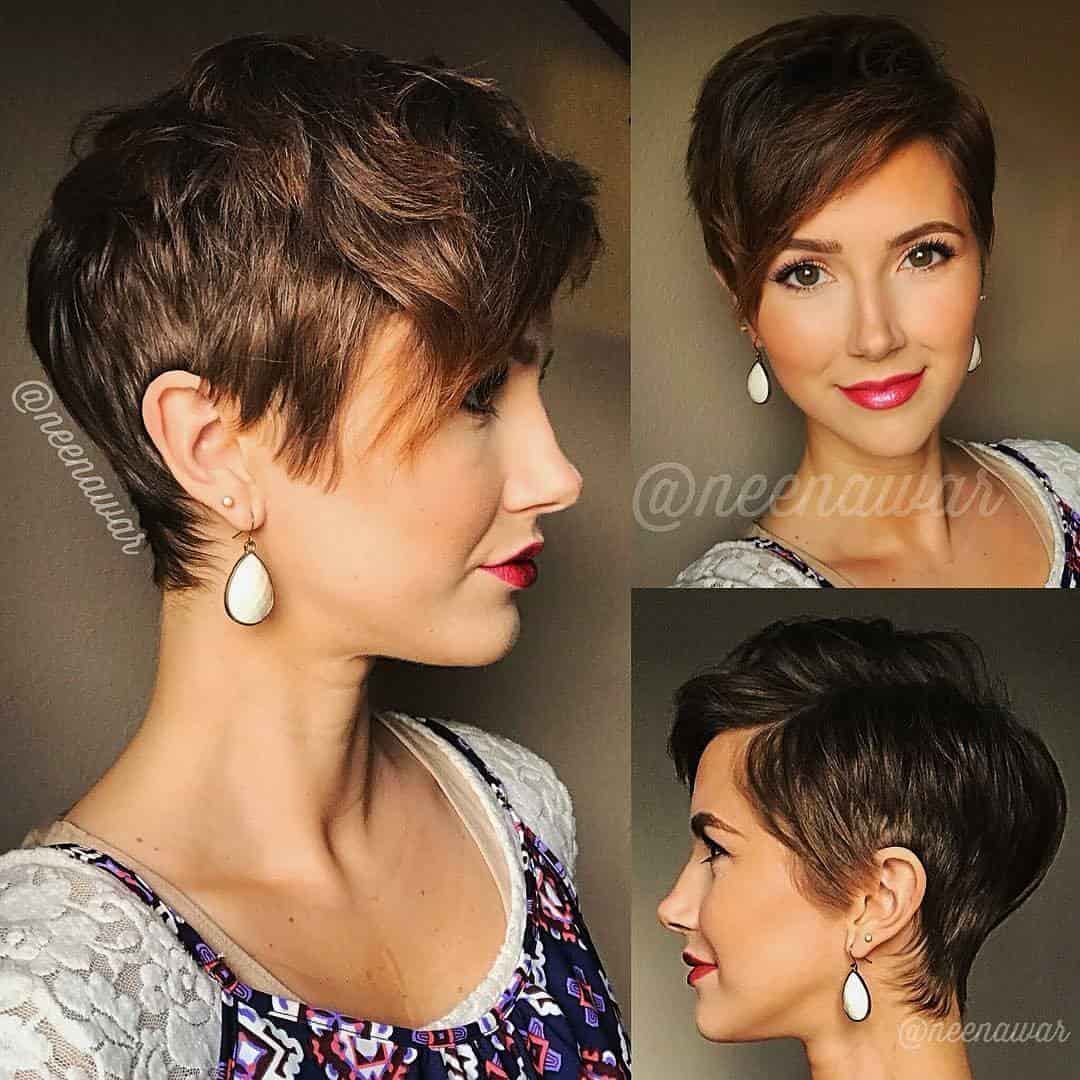 Натуральные каштановые и шоколадные оттенки станут модным решением для короткой стрижки возрастной модницы.