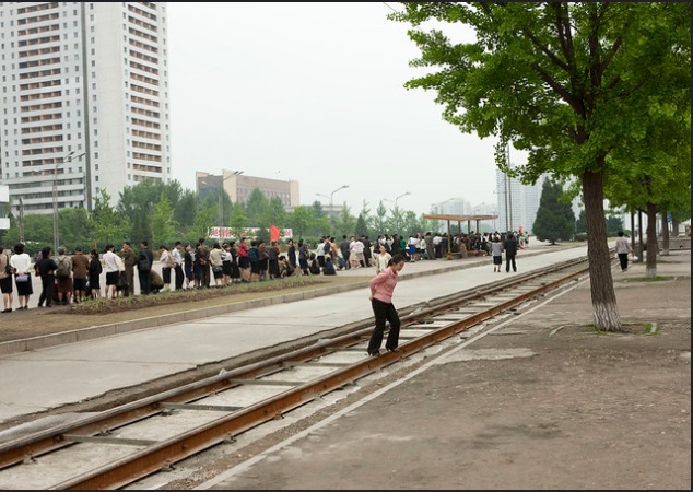 И еще одно невинное, на первый взгляд, фото, которое тоже могло попасть под запрет. В чем причина? Посмотрите внимательно на трамвай: его почтенный возраст, ржавые бока и битые стекла более чем красноречиво говорят об общем состоянии городского транспорта в КНДР. Кстати, в провинции об общественном транспорте и речи быть не может — люди там чаще всего передвигаются по старинке, в повозках на гужевой тяге.