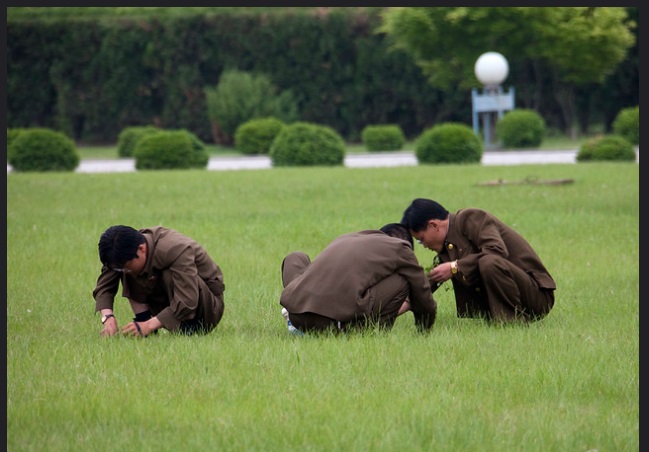 Солдаты «выщипывают» газон, Пхеньян, 2009 год.