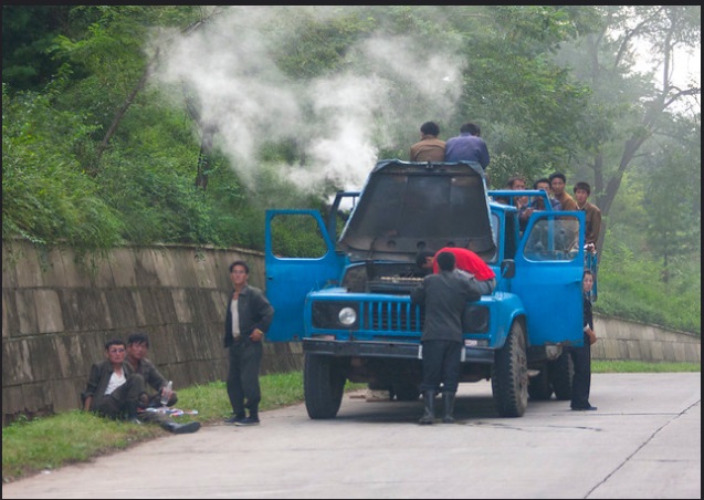 Из-за нехватки топлива многие автомобили за пределами Пхеньяна ездят на газе, который вырабатывается во время сжигания древесного угля. Неудивительно, что подобное топливо, которое применяли в Европе во время Второй мировой войны, приводит к поломке и без того не очень надежных транспортных средств.