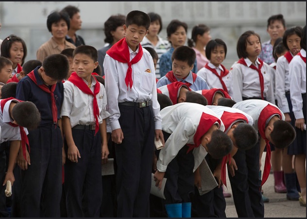 Северокорейские пионеры, готовящиеся отдать дань уважения великим лидерам страны, Пхеньян, 2012 год.