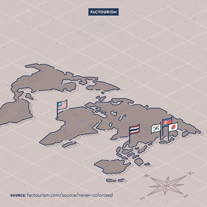 13. Лишь 5 современных стран никогда не были колонизированы Европой
