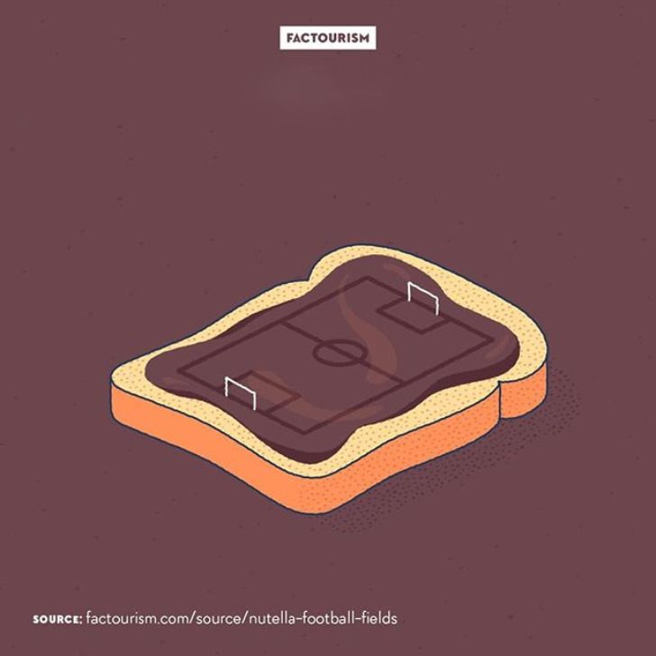 15. Всей Nutella, которая продается в мире за год, можно покрыть более 1 000 футбольных полей