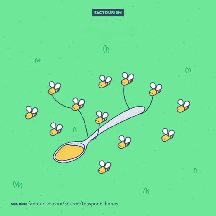 16. Чайная ложка меда — это результат работы всей жизни 12 пчел