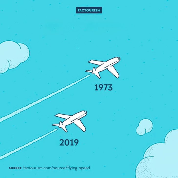 3. Сейчас самолеты летают медленнее, чем в прошлом