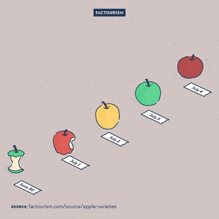 В мире существует более 7 500 известных сортов яблок. А 20 лет — это 7 300 дней. Так что вам понадобится даже больше 20 лет, чтобы попробовать каждый сорт.