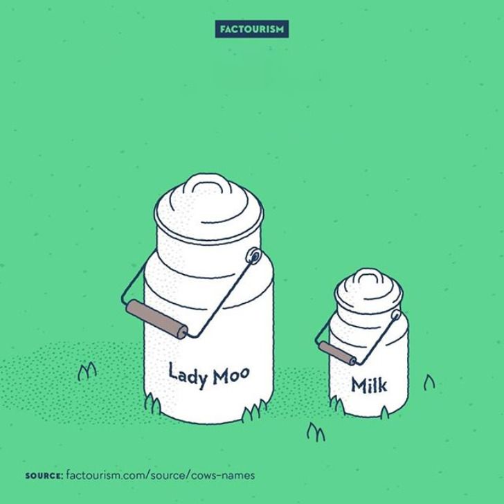 8. Коровы, которых называют по кличке, дают на 258 л молока в год больше, чем те, которых никак не зовут