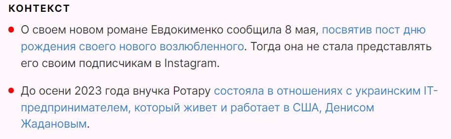 Так, новым избранником внучки Ротару стал американский миллионер Макс Лернер. Семья Соффии-младшей на снимок отреагировала позитивно. Так, мать Софии — Светлана Евдокименко — в комментариях опубликовала смайл в виде сердца. А отец девушки — Руслан Евдокименко, как и сама София Ротару, просто поставили лайк под постом.