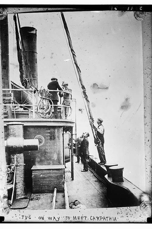 Буксир в пути к судну «Карпатия», спасшему людей с «Титаника»