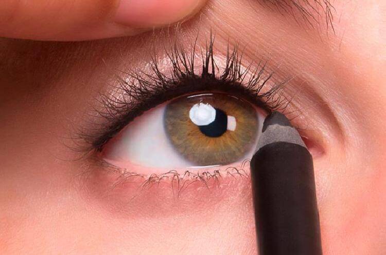 Черным лайнером или карандашом закрась кожу между корней ресниц, и они станут казаться более густыми, даже если ты не наносила тушь.