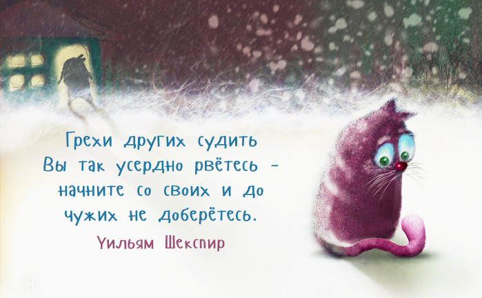 - Грехи других судить Вы так усердно рвётесь – начните со своих и до чужих не доберётесь.