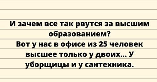 Когда работа кипит и трудовой день в разгаре, порой нужно сделать паузу, передохнуть и переключиться. Коротенькая прогулка на свежем воздухе, вкусный обед, чашечка ароматного напитка, телефонный разговор с близким человеком — простые, но универсальные способы дать мозгу небольшой отдых, и порадовать себя такой простой приятностью. А еще один отличный способ провести небольшую паузу посредине дня — это прочитать нашу новенькую подборочку юмора. Она у нас сегодня легенькая, очаровательная и забавная. Наслаждайтесь!