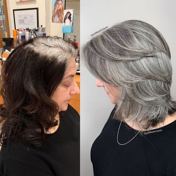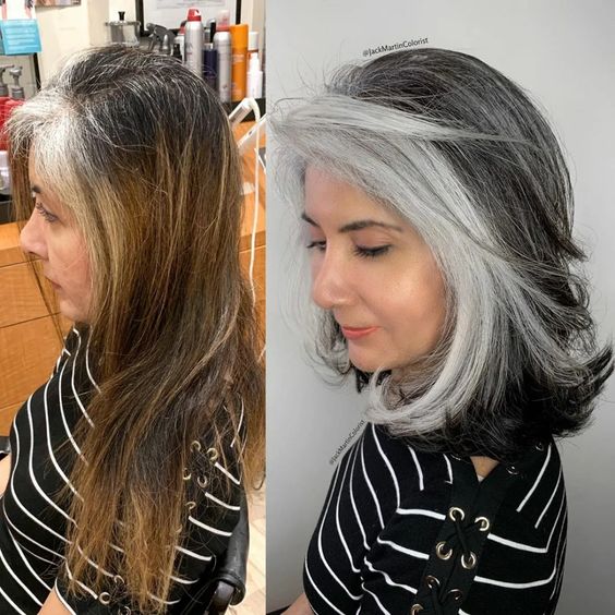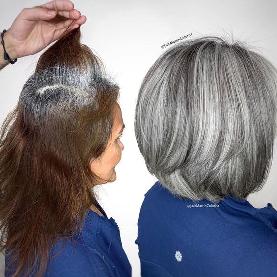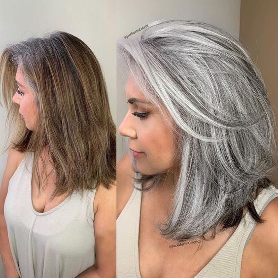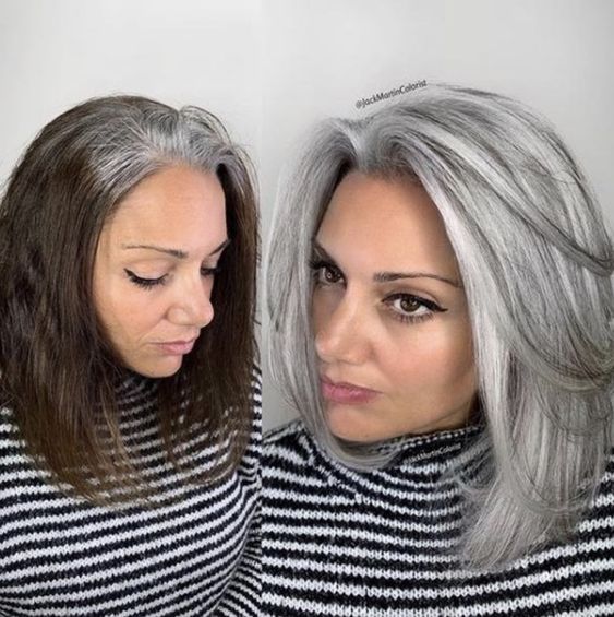 Как-то раз над этим вопросом задумались стилисты и решили изменить подход. Вместо того, чтобы бороться с сединой клиенток, они решили превратить ее в стильный окрас. Теперь уже доказано годами, что седина может смотреться трендово. Нужно просто правильно обыграть цвет.