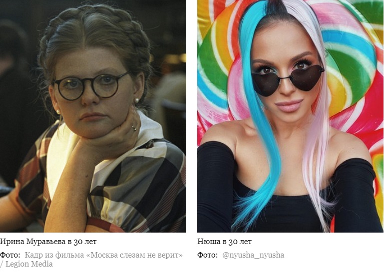 На фото справа расположилась ее современная ровесница — певица Нюша.