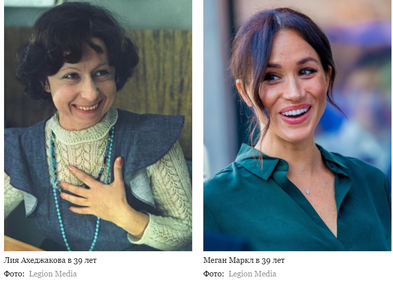 На фото справа расположилась ее современная ровесница — Меган Маркл. Выглядит ли на свой возраст она?