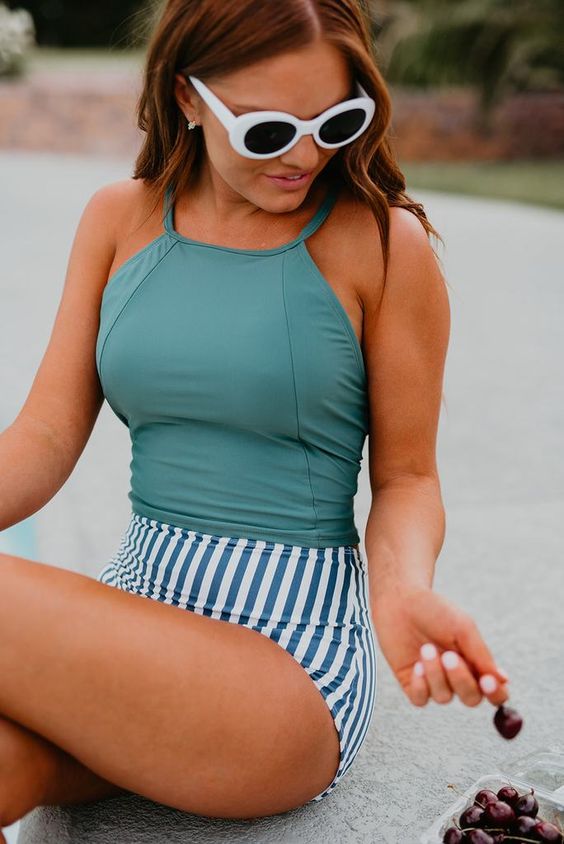 В нашей фото-подборке вы найдете плавки с высокой посадкой, купальники с геометрическими принтами, в горошек, с необычным текстилем, и даже танкини. Напомним, что танкини – это раздельный купальник с удлиненным свободным топом либо майкой с лифом. Это очень выигрышная модель, которая подойдет любому типу фигуры.