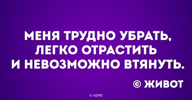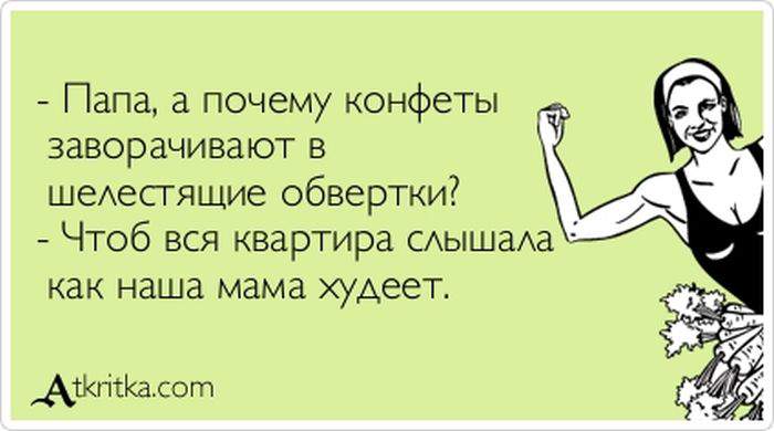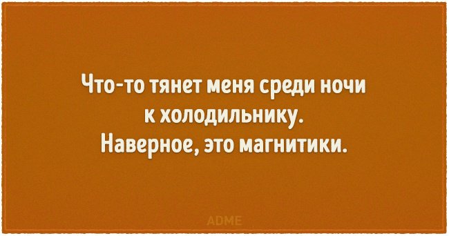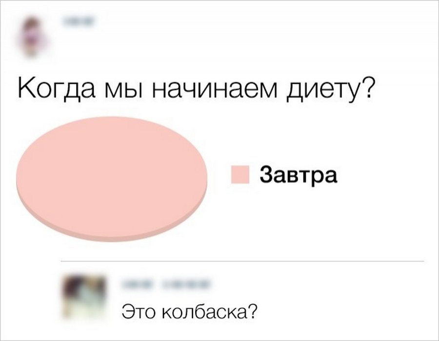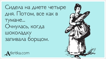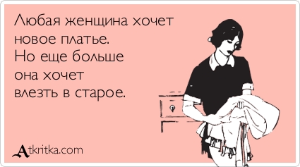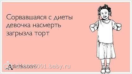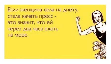У каждой женщины бывают периоды, когда она решается сесть на диету. И, надо сказать, это всегда непростое время. Но если добавить немного юмора, сидеть на диете становится намного легче и веселее. Так давайте же посмеемся проблеме в лицо! И вперед – к здоровому питанию и беговой дорожке, ведь скоро лето: нужно быть в форме!