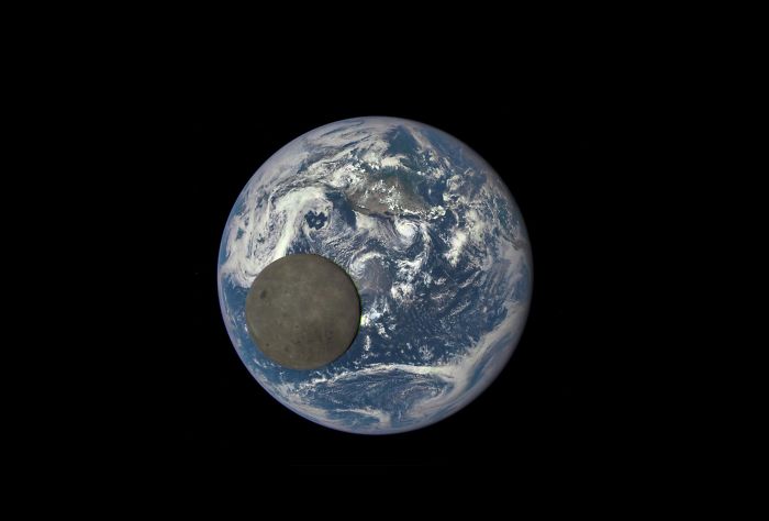 13) Аппарат DSCOVR заснял прохождение Луны перед диском Земли.