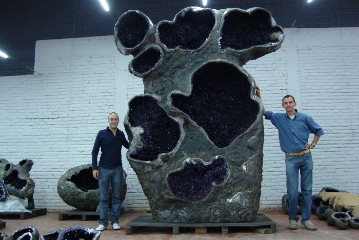 18) Гигантская жеода аметиста. Жеоды это округлые образования в породе, кора у них твёрдая, а внутри пустота, часто заполненная кристаллами драгоценных камней.