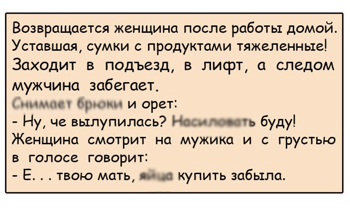 Мы от души надеемся, что у Вас сегодня будет замечательный, легкий и удачный день. А так как все мы знаем, что жизнь всегда на стороне счастливых и позитивных людей, мы с удовольствием делаем все, дубы Ваше настроение всегда было на максимуме, вне зависимости от внешних фактором и любых других обстоятельств. Уверенны, что эта пятерочка анекдотов заставит Вас посмеяться от души!