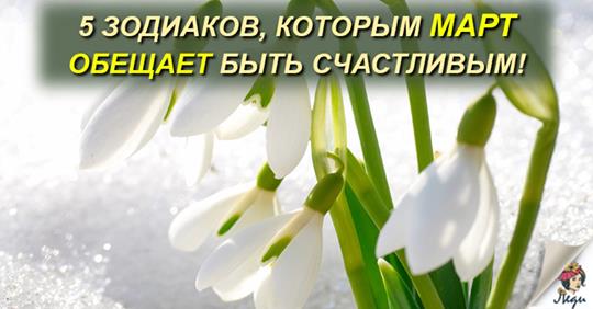 Весна — период новых надежд, встреч и время счастья. Уходит зима вместе с холодами и приходит тепло, жизнь и солнце даже в самые потаенные уголки мира. Для некоторых знаков зодиака, первый месяц весны будет наполнены незабываемыми моментами и счастьем. Самое главное не проморгать этот момент.