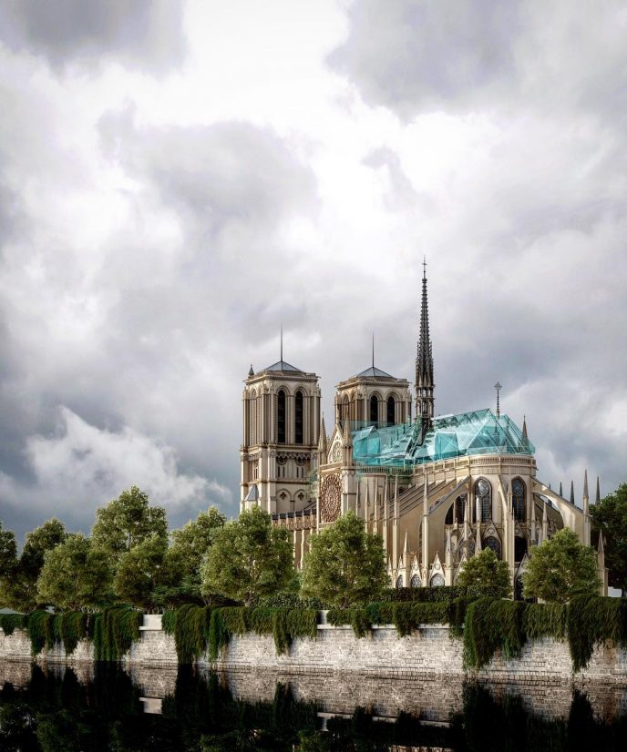 После того, как пожар потушили, премьер-министр Франции Эдуар Филипп объявил международный архитектурный конкурс. Предложили свои варианты перестройки обрушившегося шпиля несколько сотен людей. И вот 7 самых необычных вариантов.