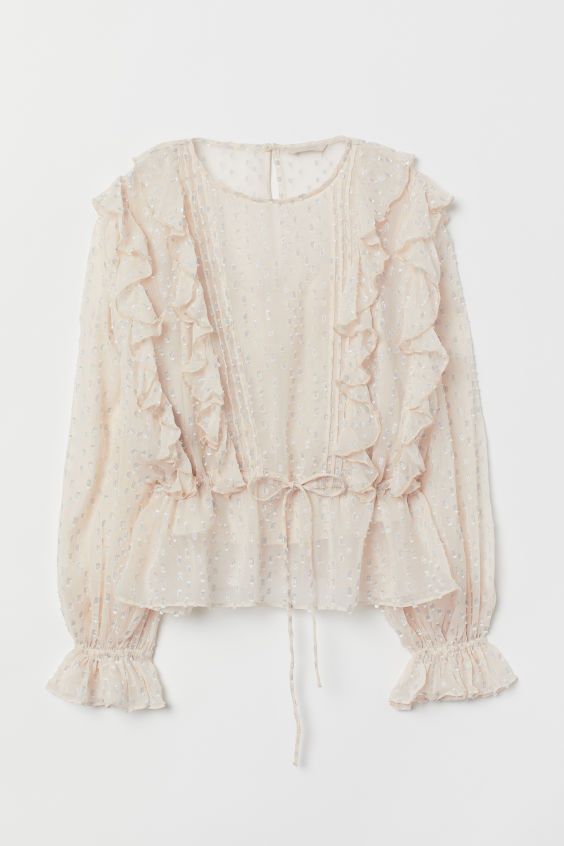 Главное, включать такие вещи в образ вместе с лаконичными, спокойными, иначе получится перебор. Хороший выбор — блуза с рюшами и джинсы.