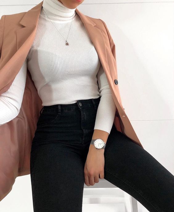 Носите водолазки с костюмами, платьями, джинсами, это безупречная вещь, которая подходит ко всему.