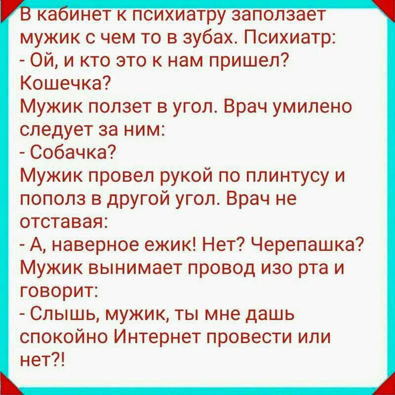 Сегодняшний «Анекдот Дня» о враче, который привык иметь дело с психическими расстройствами, и видит неадекватное поведение во всем, что происходит вокруг… Невозможно не хохотать, когда представляешь эту картину!