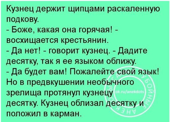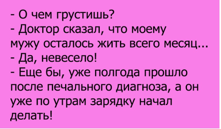 Вторник – вторником, работа – работой, а обед и юмор – по расписанию. Ведь кто сказал, что голодные и грустные люди могут работать продуктивно и результативно? Чтобы добиваться наилучших показателей, следует как можно чаще радовать себя чем-то вкусненьким. Ну и, конечно, читать наши анекдоты. Тогда настроение будет на высоте!