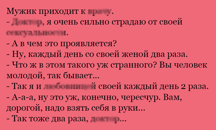 Страстность — это замечательно для личной жизни, но всему должен быть предел… О том, с какой проблемой встретился очень любвеобильный мужчина — наш первый анекдот.