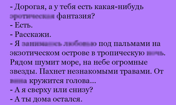 Темнота в кинотеатре во время сеанса часто подталкивает влюбленные парочки «пошалить», вот только герой нашего первого анекдота столкнулся с не совсем стандартной проблемой — с его женой пошалить решил другой мужчина…Чем все это закончилось — читайте далее.