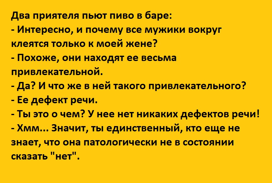 Изюминка этой подборки — анекдот про привлекательную жену с дефектами речи. Впрочем, и кроме этого вам будет над чем здесь посмеяться. Уверены — каждый найдет себе шутку по своему вкусу, ведь все они в нашей подборке актуальные и жизненные.