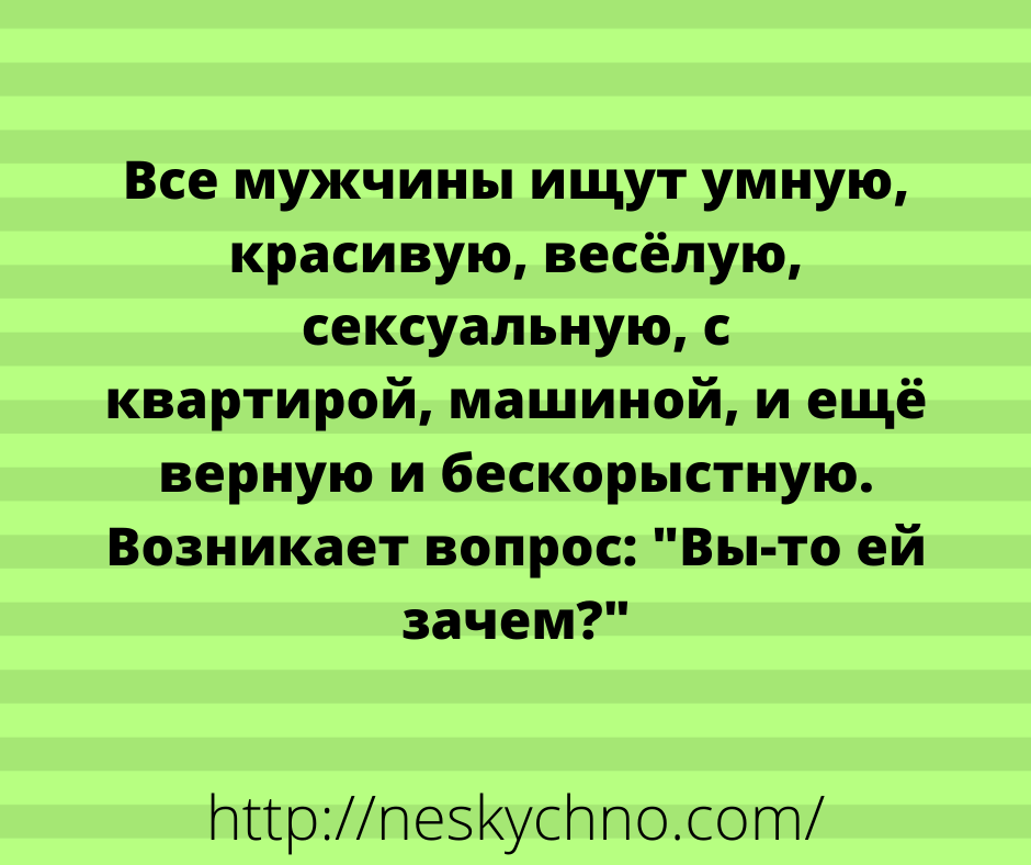 Алкоголь творит с людьми настоящие «чудеса». Приняв определенную дозу скромняги превращаются в храбрецов, а застенчивые мужчины в любвеобильных мачо. Вот и герой нашего первого анекдота, заявившись домой в совсем нетрезвом состоянии, гордо заявил жене, что им интересовалась абсолютно каждая встретившаяся на его пути женщина..