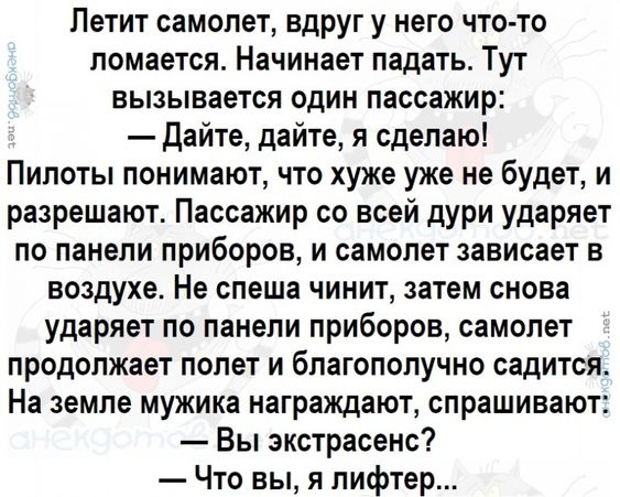 А с нашими юмористическими коллекциями сохранять настроение в тонусе вовсе не сложно. Ведь мы регулярно готовим для вас всё новые и новые шуточки. Они – так или иначе – позитивным образом влияют на ваш настрой. А значит, и неделя пройдет максимально легко. Ведь у хороших, оптимистичных людей не может быть иначе!