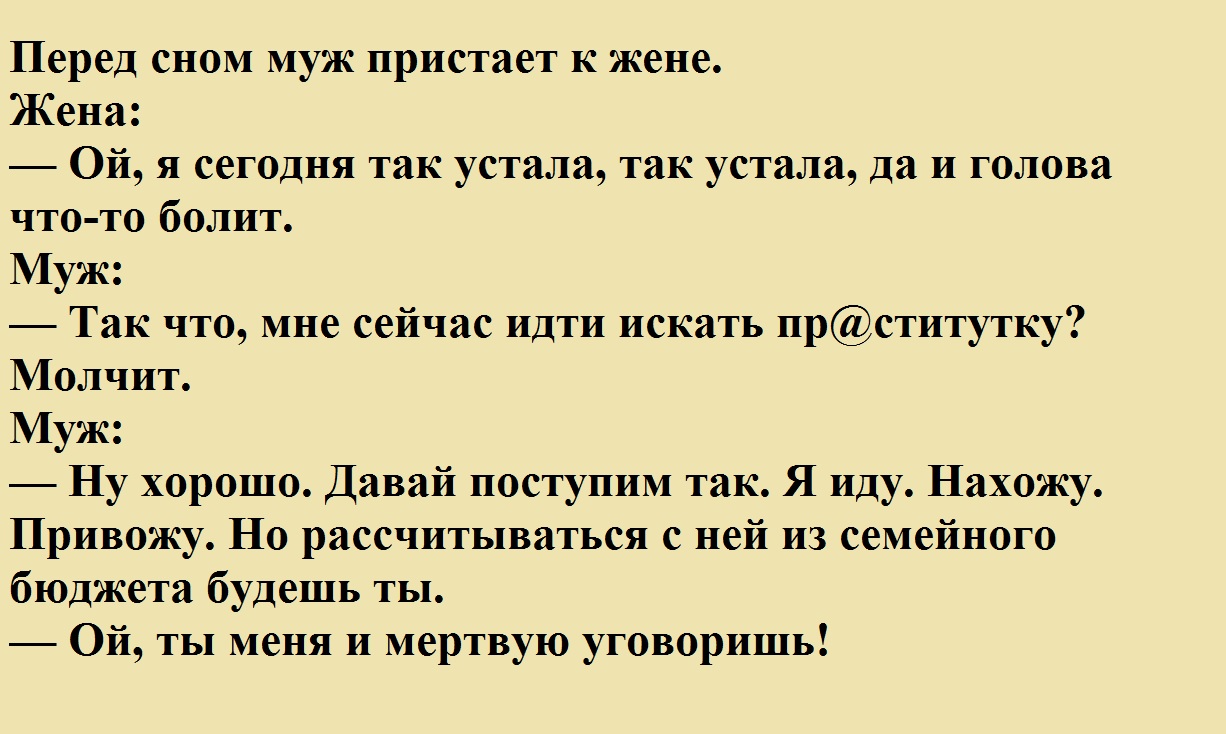 Именно об этом – наша свежая коллекция шуточек. Каждый семейный человек наверняка узнает себя в одном из представленных анекдотов. А это – прекрасный дополнительный повод для веселья!