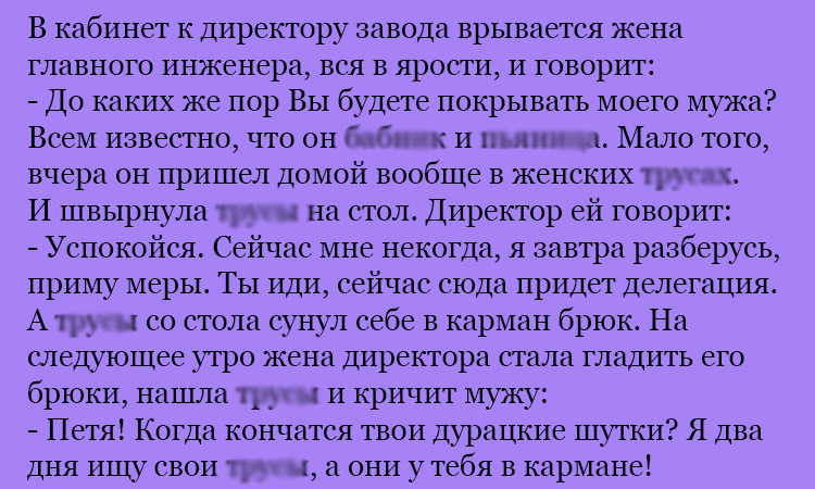 Выходные можно провести по-разному — кто-от любит просто лежать на диване с пультом от телевизора, кто-то отправляется на шопинг, кто-то занимается бытовыми делами, кто-то — развлекается с друзьями… Но героиня нашего первого анекдота не выбрали ни один из вышеперечисленных вариантов — она свои выходные провела ну очень, скажем так, интересно…