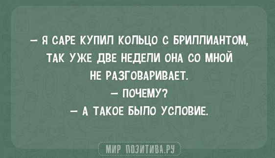 Как известно, жизнь – это лучший режиссёр, при чём самых различных жанров. В том числе и комедийного. Отсюда и такое количество замечательных анекдотов на просторах сети. А мы лишь выбираем лучшие из лучших, чтобы показать их вам. Чтобы вы смогли поулыбаться, чтобы они рассмешили их своей жизненностью.