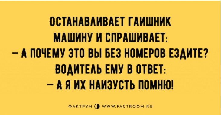 Для поддержания хорошего настроения важна регулярность. А потому мы без устали подыскиваем для вас самые уморительные анекдоты, чтобы потом собрать их в одну подборку и продемонстрировать вам. Мы стараемся ни на час не оставлять вас без хороших шуток, чтобы в любой непонятной ситуации вам было, куда обратиться за позитивным настроем.